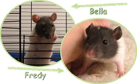 Hned po něm přišla samička Bella. Ta již po odebrání ze zverimexu byla gravidní a tak se nám domů urodila nadílka dalších 11 potkánků navíc. Mezi nimi, byl i malý Fredík, capped potkánek. Jediný dvoubarevný potkánek z vrhu. Doufal jsem, že to bude kluk, jelikož jsem ho již jako Fredyho přezdíval. A byl to klučina :) Bohužel měla samička svrab a sestra starost o ni zanedbala, tak na cekové "vyžrání" zemřela. Fredík se s toho zotavil ( dnes ještě trošku hrbolaté ouška ) a stal se tím, který mě vítal při příchodu domů ze školy. Můj zájem asi po půl roce opadl a přestal jsem se o něj zajímat. Až v jeho 1 roku jsem začal hledat informace o potkáncích a jejich chovu. Oběvil jsem informaci o potkáncích s PP a tak jsem se rozhodl rodiče přemlouvat k potkánkovi dalšímu. Nechtěli povolit, ale nakonec jsem si ho doopravdy "vybrečel".